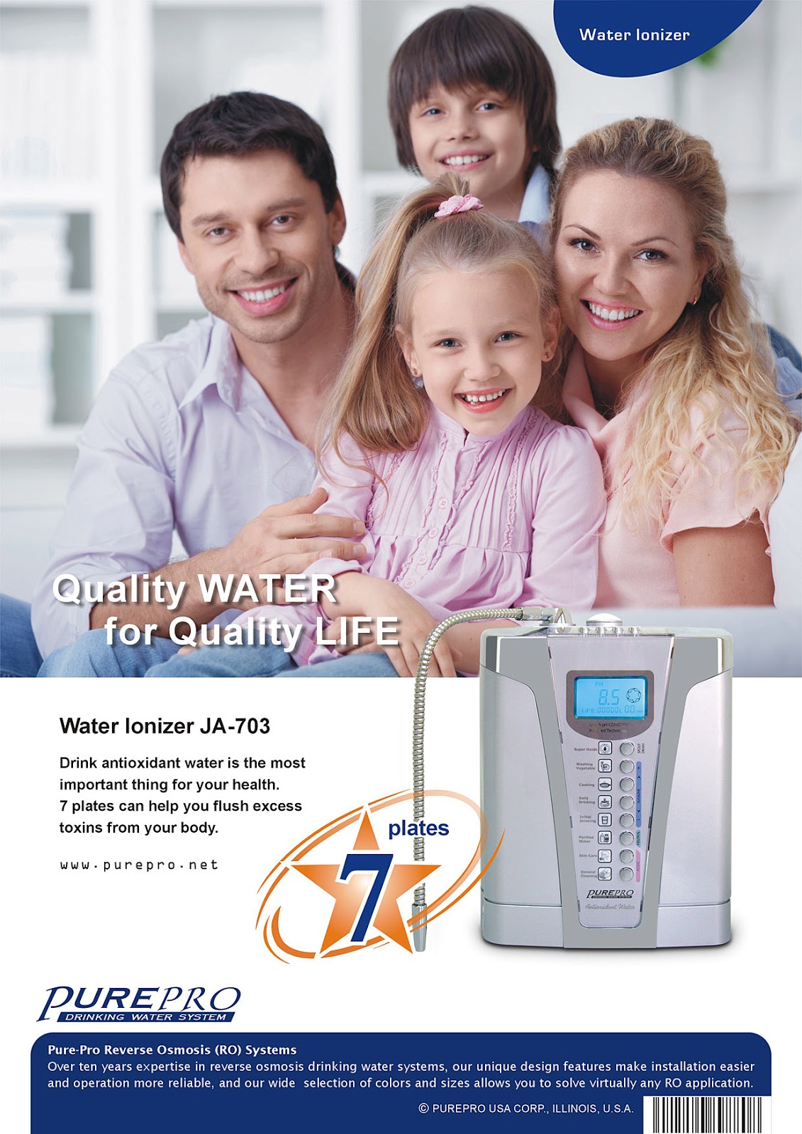 PurePro JA-703 is PurePro's most powerful antioxidant machine - featuring 7 platinum-dipped titanium plates for improved water ionization and increased antioxidant production potential.